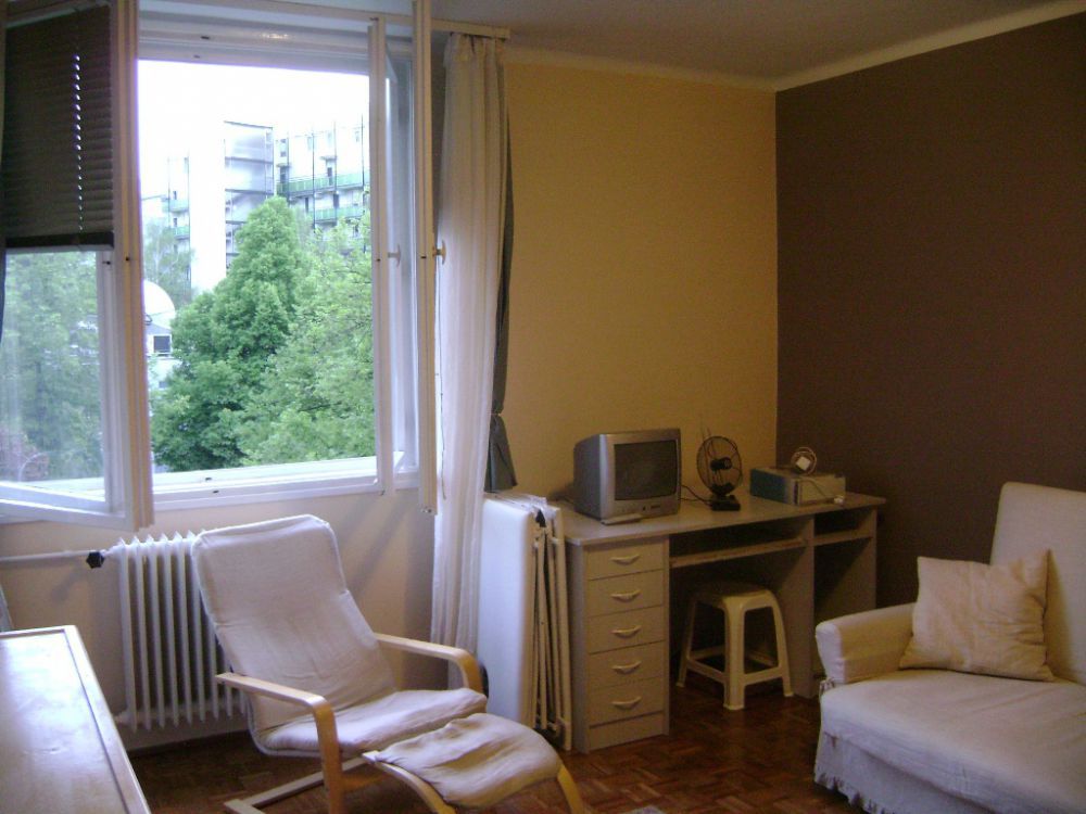 A lakás csendes, világos, napfényes és parkos részre néz.